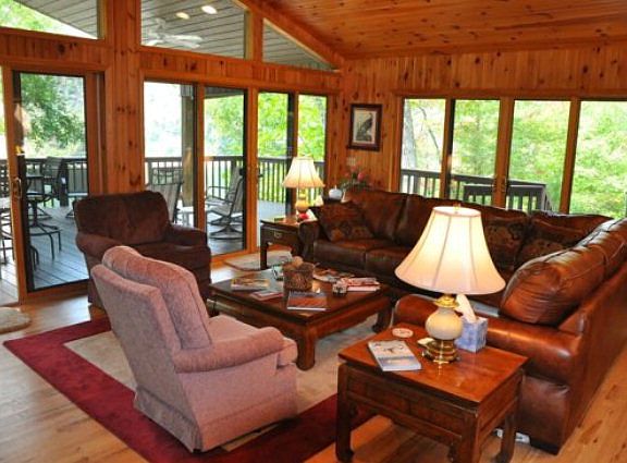 Lake front home is Fontana Lake Estates. This home is a three bedroom, three bath on a double lakefront lot. Lots 11 & 12 total 4.25 acres with approximately 400 +/- feet of shoreline. Enjoy the dock with a double deck party platform for sunning and group gatherings. House comes fully furnish with a golf cart to drive to the dock. Large kitchen open to the family room. Split floor plan on upper level with bath and bedrooms on each side of common area. Great house for entertaining and large families. Two fireplaces, one up and one down. Come in from the lake and rinse off in the terrace level bath. Huge covered deck with lake and mountain view. This is a special house.