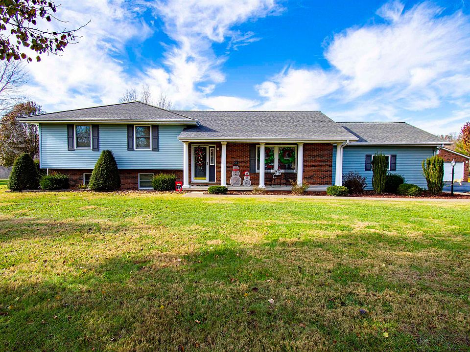 First time on and oh you don’t want to miss this one! This beautiful home has so many offerings you will fall in love with. First off, the home sits on a gorgeous lot in the Stevens Lake community that overlooks the beautiful soy field and horizon line. Outside you will find a 3 car garage that offers unreal square footage, entrance in the front and the side. The front yard is beautifully landscaped with mature trees and other offerings. Sit outside in the rear of this home and spend your summers relaxing by the inground pool with the slide for the kids! It also has a separate large size deck that morning coffee offerings will never be the same! Walking inside this home you will find elegance, class and tasteful colors throughout. From wainscoting to gorgeous hardwood to elegant backsplash this one has it all. Kitchen is equipped with solid surface countertops and leads off to the sunroom for your entertaining . Downstairs offers another bedroom and large family room for the kiddos or for entertaining your guests. Master has large tiled walk in shower, modern design and plenty of room for two. Home also offers another attached two car garage also. So many things to say on this one you need to see to appreciate! Additional lot can be purchased also! The views are simply amazing , and don’t let this one get by you! Call for your private tour!