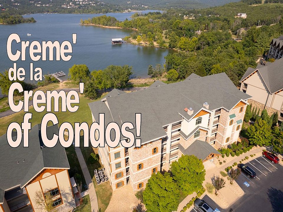 Creme' de la Creme' of Condos at Table Rock Lake! Steel beam and concrete construction for superior safety and soundproofing are just the underpinnings of this lovely 3rd floor luxury lake front condo. (These RARELY come on the market.) Creamy neutral tones highlight the gorgeous year-round lake views from living-kitchen and master suite. Used only sparingly over the life of the unit, this 3 bedroom unit shows VERY well. Sparkling clean! Amenities include: Two pools, one inside. Clubhouse. Playground. Mini Golf. Tennis, pickleball. Boat launch, trailer parking, courtesy dock, propane. Lush landscaping well maintained. (Building 8 is NOT part of the short-term rentals! Get to know your neighbors!) 12x30 slip in upscale community dock off Hill Haven (6 mi) is avail $90k. Quick jog over the hill to Big Cedar Lodge & all of THOSE lovely restaurants, spa & attractions! Make memories that your family will cherish for a lifetime!