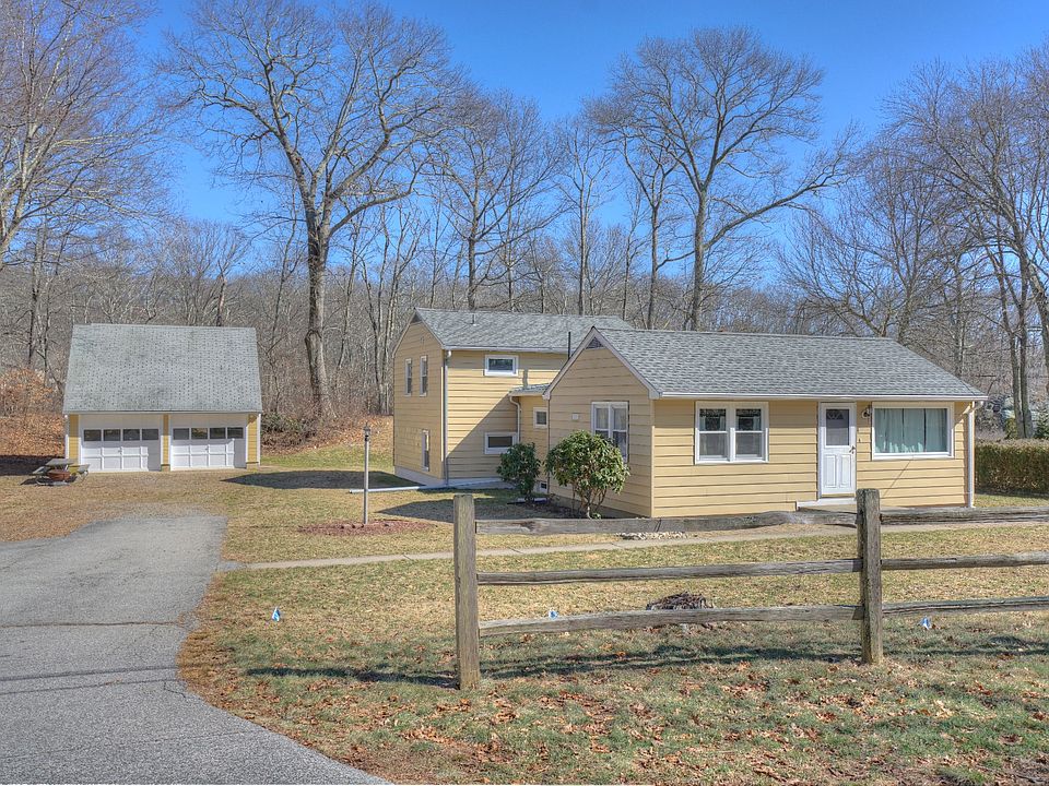 Country style Ranch home has 3 bedrooms, 2 baths situated on a quiet road in Mystic. Large living room and kitchen. Upgraded bathrooms, new boiler, hardwood flooring and Thermopane windows. Spacious family room on lower level with walk-out to nice open yard. House generator and 2 car detached garage with large loft for storage. Close to downtown Mystic, Pfizer, Electric Boat, Casinos and Naval Submarine Base.