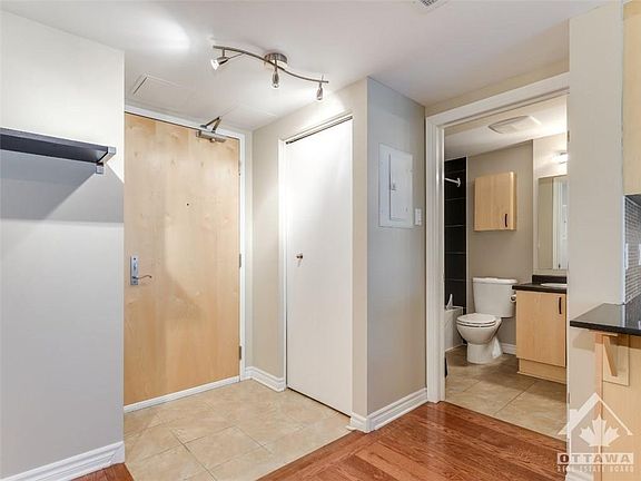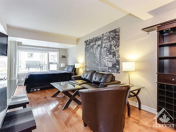 Unique larger studio condo with a separate exterior entrance and ground-level patio. Fully furnished, so all you need to do is move in! The open concept living, dining and bedroom space has hardwood floors. A notably large kitchen has granite counters and breakfast bar. Large windows take in natural light from the south. Building amenities include an indoor pool and a fitness centre. Outdoor lifestyle location with easy access to NCC bike/walking trails, kayaking and parkland. Moments away from Parliament Hill and the LRT. 2023-09-21