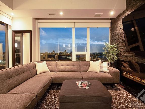 Exceptional opportunity to rent this exquisite fully furnished penthouse. Offering million dollar river views. Incredible entertaining space with open living and dining areas overlooking Ottawa River. Designer finishes, with contemporary furniture, featuring hardwood floors, SS appliances, granite counters, master bedroom w/king size bed and 2nd bedroom w/ queen size bed. Utilities, storage locker and parking included. Silver Leed candidate building w/salt-water pool, meeting/party room, rooftop deck off 7th floor. LeBreton Flats is a trendy neighbourhood close to the ByWard Market, War Museum, Parliament Hill and Downtown Sparks St and Elgin St. An Ideal Location For Walkers & Cyclists.