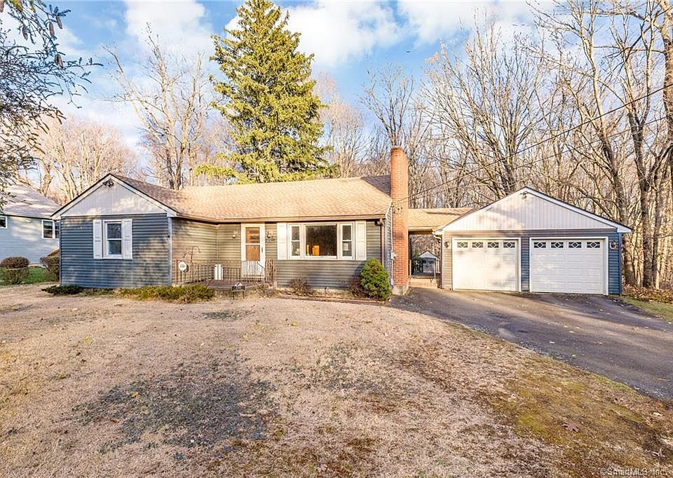 Solid 3 bedroom ranch on South Windsor town line. Fireplaced family room with bay window. 2 car attached garage. Brand new 3 month old roof. New boiler 2019. Line in front of street with natural gas if buyer wants to hook up. First floor laundry. Spacious primary bedroom. Home backs to 100 acre land conservation trust for ultimate picturesque wooded privacy when enjoying the back yard. Just down the street from golf course and great restaurant! Hardwood flooring throughout. Shed in rear for storage. No homes across the street for wooded views. BRAND NEW SEPTIC BEING INSTALLED!