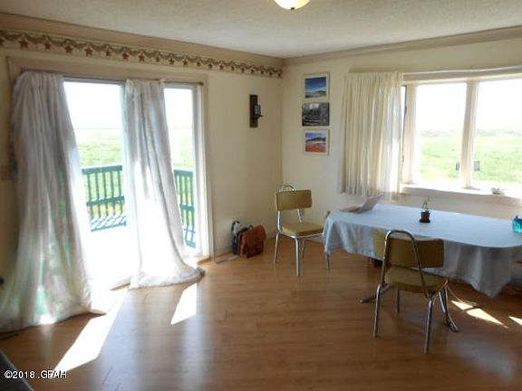 Great setting for the person who appreciates peace and quiet. No close neighbors. Endless panoramic views of Square Butte, Little and Big Belts, and the Rocky Mtn Front.Neighbors are a large ranch and a Hutterite Colony. Large, roomy split level home has large living room. Big country eat in kitchen. Lots of tile in the entry, baths, and kitchen. Third bathroom going in basement. Home has newer roof and Two Buttes Water. Large family room with wood stove in daylight walk out basement. Owner is still working on a few cosmetic repairs. Really nice 40x75 Ft. clear span steel shop with tall overhead door. Hutterites have mentioned that they would lease out some additional acres to the South of the property for pasture maybe 40 or 50 acres or so. Owner financing available to qualified buyer.