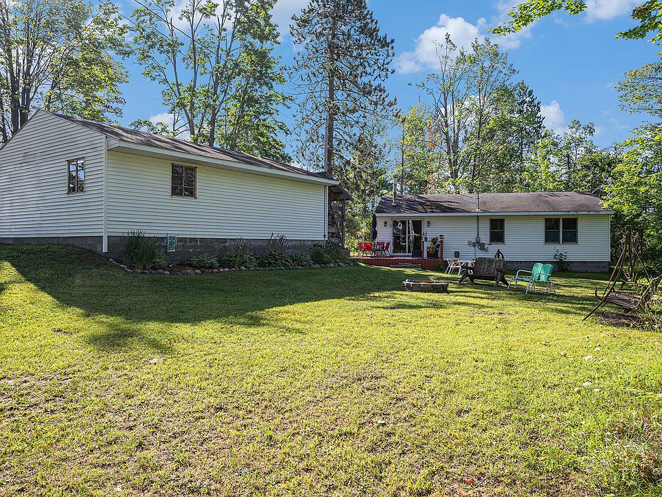 Perfect for year-round living, a summer retreat, or up north cabin, this cozy home sits directly across from thousands of acres of State land in the heart of Northern Michigan. Enjoy endless outdoor recreation hiking, hunting, snowmobiling, right out your front door. The updated interior features knotty pine for a true Up North feel, stainless steel appliances, oak cabinets, and a wood stove that heats the whole home. Ceramic tile and newer carpet throughout. Outside, the maintenance-free exterior and large garage with an insulated bonus room—ideal for a man cave or space for toys. A true Northern getaway!