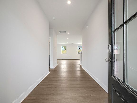 BRAND NEW - MOVE-IN READY! East-facing Lambert Plan featuring 4 bedrooms, a loft, and 3 bathrooms, with hardwood floors throughout and thoughtful upgrades. The main level includes a private guest suite with a full bath—perfect for guests or a home office. The open-concept chef's kitchen boasts a large island, gourmet design, and crisp white cabinets, seamlessly connecting to the dining area, covered patio, and spacious family room—ideal for entertaining or everyday living. The family room showcases a modern fireplace for added warmth and style. A convenient mudroom with cubbies keeps your entryway organized. Upstairs, a large loft provides flexible living space. The primary suite serves as a private retreat, featuring an ensuite bathroom with dual sinks, a large tiled walk-in shower, and a generous walk-in closet. Two additional bedrooms and a full bathroom upstairs provide comfort for the entire household. The laundry room is conveniently located on the second floor and includes a washer and dryer. Enjoy the outdoors in your large flat backyard with a covered patio, or take advantage of the community's walking trails, parks, and nearby lakes. Perfectly located just minutes from Downtown Apex, RTP, and RDU, with easy access to grocery stores, restaurants, and entertainment.