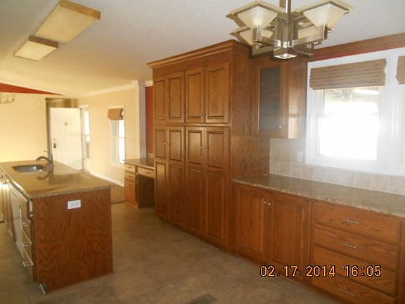 This 3 bedroom, 2 bath mobile home has been recently remodeled and updating to lighting, cabinets, and countertops. Central A/C and heat and a large covered deck area, complete with pond in the backyard!