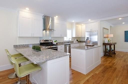 Newly constructed and renovated (2015) single family home on a large corner lot in Liberty Heights area. Fabulous floor plan seamlessly balancing formal and informal areas. Expansive contemporary chef's kitchen with pantry, work desk, island and peninsula opens to a spacious family room with gas fireplace. Oversized direct entry two car garage, good size mud room, vestibule and half bath complete the first floor. Cathedral ceiling master bedroom with lovely master bath and walk in closet, three additional bedrooms and full bath along with the washer and dryer area are all on the second level. Third level offers a great two room suite that could be used and an office, teenager/au pair suite or play/media room. Fenced in private yard. Within walking distance to parks, shops, bike path, conservation, MBTA bus lines to Alewife or Harvard Square and easy access to Rt 2. This bright and cheerful home is likely to be the one you have been waiting for.
