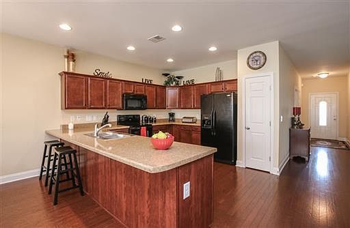 Immaculate! Open floor plan. Huge Kitchen w/ 9' eat-on bar, pantry and lots of cabinets! Plantation Shutters. Hardwood flooring.Elegant Master Suite w/ 5' shower & huge walk-in closet! 3rd Bed has full bath & is large enough to be a Bonus Rm or In-law/Teen Suite. Covered patio. Beautifully landscaped, fenced back yard. Walk to Pool & Clubhouse.