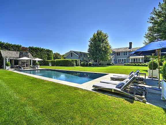 Water Mill South. This beautiful seven bedroom, nine bathroom (and two half-baths) traditional is available for a summer rental. Traditional but up-to-date high end design, pristine house. Carriage house with guest suite, pool house, large heated gunite pool.