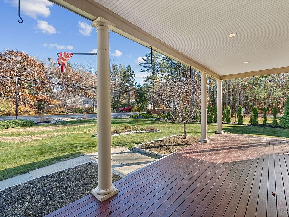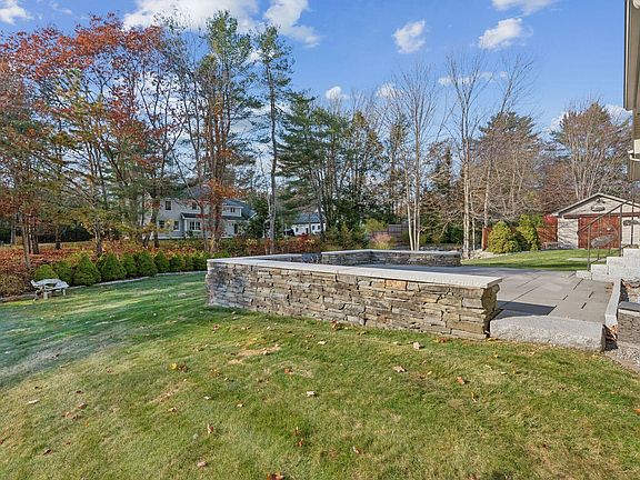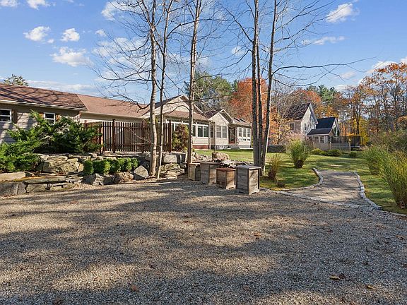 A true Chef's kitchen impresses with cherry cabinetry, wet bar, granite countertops, wet bar and a convenient summer kitchen for backyard gatherings. A sunlit, all season sunroom opens to a raised Maine granite capped patio surrounded by stunning landscaping and tasteful local stone hardscaping complete with mahogany decking and tasteful fencing for privacy. Ample lawn space with a cozy fire pit area, room for bocce, croquet or volleyball.