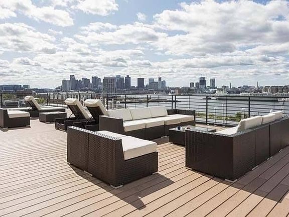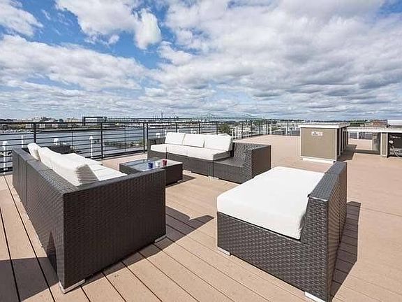Gorgeous 2 bedroom, 2 bathroom condo in a great part of East Boston with amazing waterfront views from the enormous roof deck that includes expansive, comfortable lounge seating and several Weber gas grills for cooking. Laundry right in the unit, along with dishwasher & disposal, central air conditioning, and a new 55" TV. Condo also has a building manager on-site during the week for mail and package deliveries, as well as a private gym for your use at no charge 24 hours/day. Condo is conveniently located less than a 10 minute stroll to Maverick station (blue line), and a block away from many bus lines. Not to mention it is right next to the walkway along the newly developed East Boston waterfront. This includes 1 garage parking spot, and there is also plenty of street parking. It is also across the street from a grocery store (and liquor store, Marshalls, and CVS), so super convenient for those essentials, not to mention a number of amazing local and chain restaurants. I have set the rent at a very reasonable $3,750 per month, which includes water but not electric, gas, or wifi/cable. Available October 1st. Prefer a one year lease, but will consider a longer-term lease. The enclosed pictures do not do this amazing condo justice, so come and check it out for yourself. Owner pays for water, renter pays for electric, gas, and cable/wifi. Gas and electric are typically $100/month or so. One garage spot is included in this rent, and there is plenty of street parking for free.