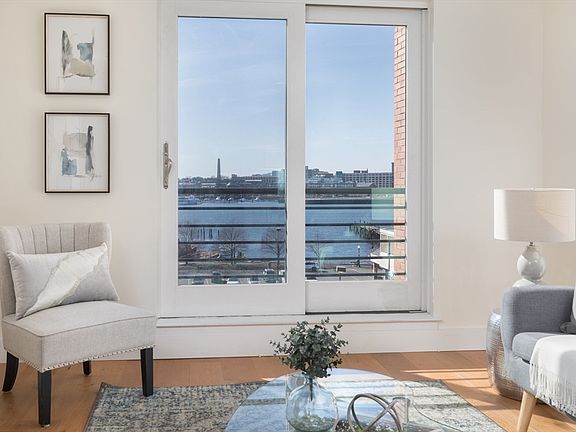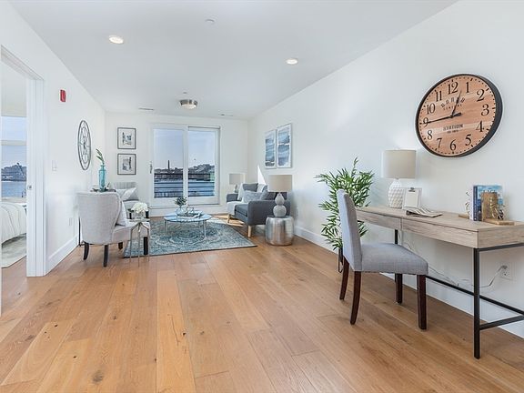 Opportunity knocks!Back on Market due to Buyer Financing! Water views from every room! Park your car in the garage, take the elevator up and enter your home with stunning blue water views. It's the dream! This modern one bedroom was built to the highest standard with European oak floors, posh white cabinetry, stainless appliances and stone counter tops. The open design is complimented by floor to ceiling sliding glass doors. Central AC, in unit washer/dryer and magnificent walk-in closet. The building features a breath taking roof deck with grills and skyline and water views, gym, on-site maintenance, pet washing station and stylish lobby. All this just a 1/2 mile to the T, steps to Stop and Shop and all the fabulous restaurants East Boston has to offer. Fantastic first time home or investment in this burgeoning neighborhood sure to soar in values.