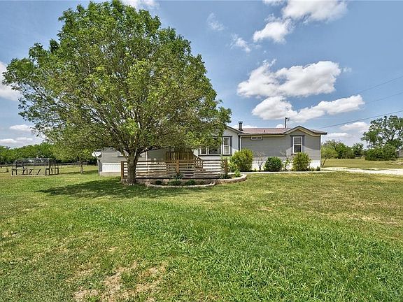 Just over 3 fully fenced acres and spacious home includes 3 bedrooms, 2 full bathrooms, open living/dining/kitchen area AND a bonus room could be additional game room or dedicated office! Fireplace! Lots of light into the living room from the large picture window. Full concrete pad under home, walk way and front patio. Oversized outbuilding! The frame is in place for a greenhouse and playscape in backyard. Country feel yet easy access to IH35 to travel north or south!