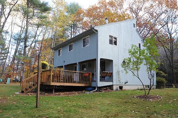 From its rustic wood beams, brick wall and hearth to its sparkling new thoughtfully designed high end kitchen, this POST & BEAM home exudes warmth and love of nature. Sparkling granite counters, gleaming wood floors enhance the sun drenched rooms with their large windows greeting sunny mornings.When summer returns you'll enjoy the porch and deck overlooking the glorious extensive gardens. Daydream in your hammock with rushing sounds of the nearby river, meditate in the Zen garden and let the world go by. This home has had meticulous upkeep of structure and systems and the land has earned the distinction of being a Certified Wildlife Habitat. Organically sustained this lot also abuts conservation land!! A quick closing possible.