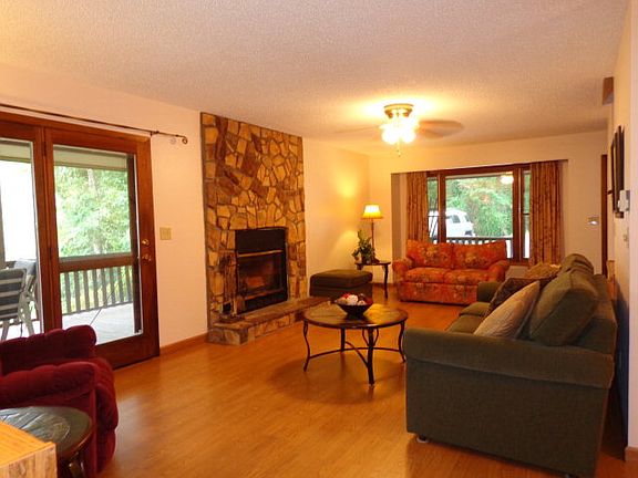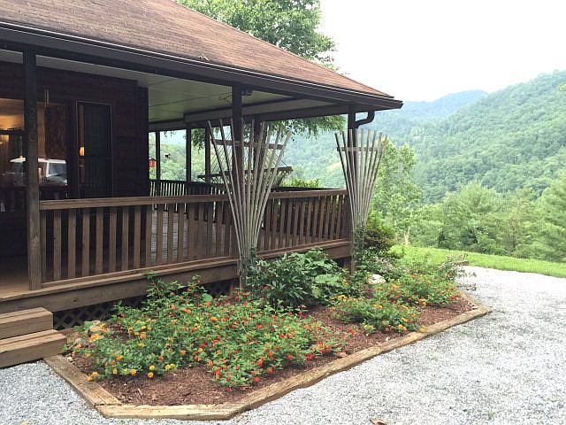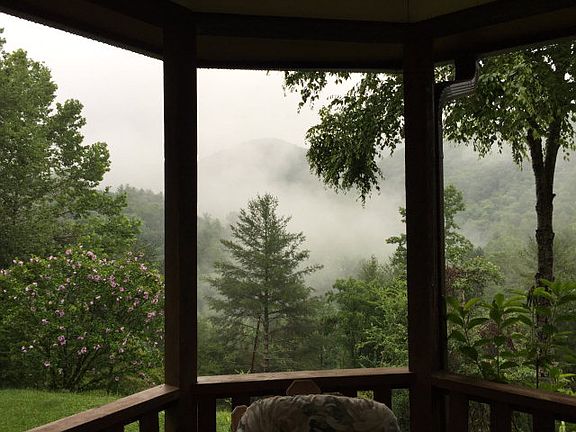 Charming 3/2/1 Cabin with Great View, minutes from WCU, immaculately kept...what a combination! Situated on over 2 acres w/ a Yearlong View of the Mountains beyond & Winter View of the Tuckaseegee River. Wraparound porch to take advantage of views. Master Suite on Main, Two Bedrooms & Full Bath upstairs. Great storage upstairs & down! Open floor plan with laminate flooring. Large Kitchen; plenty of neutrally colored counter & newly refinished cabinet space. A window over the sink too! Dining area accommodates a large table - space for Thanksgiving Dinner. French doors to Deck off Living Room, as well as Stone Hearth wood-burning Fireplace. Lounge on your deck or curl up inside on your couch with a cup of cocoa & watch the weather change over the mountains. Picture Window in Living Room overlooks front deck and pretty landscaping. 1/2 bath off good sized laundry/mud room, accessible from back deck. Matching storage building with built-in for wood storage. Terracing for plants & small fenced area for your animals. Attractive grounds; mature landscaping with sunny space for gardening. Easy paved access off Edgewater Road with easy turnaround & plenty of parking. Private.
