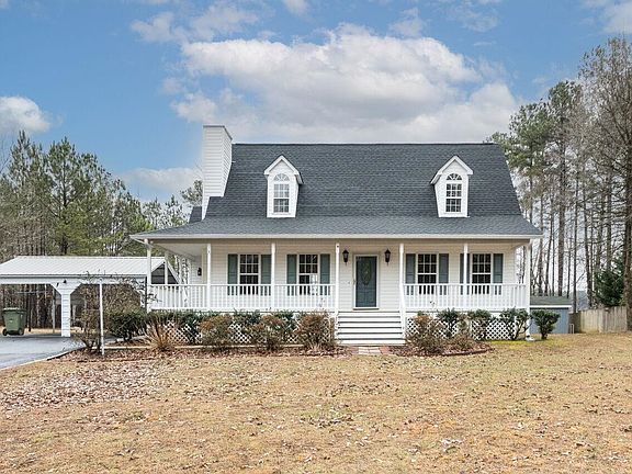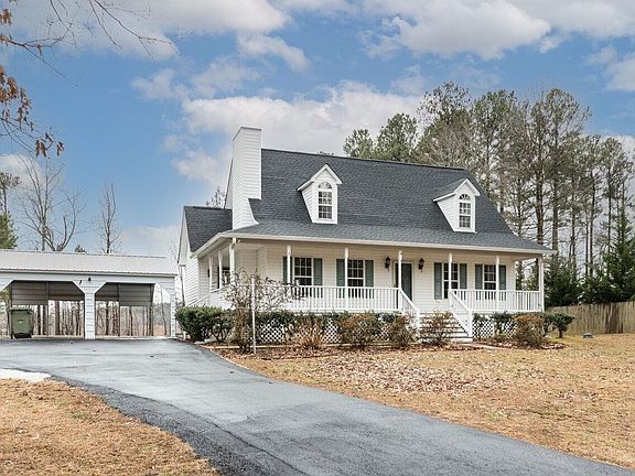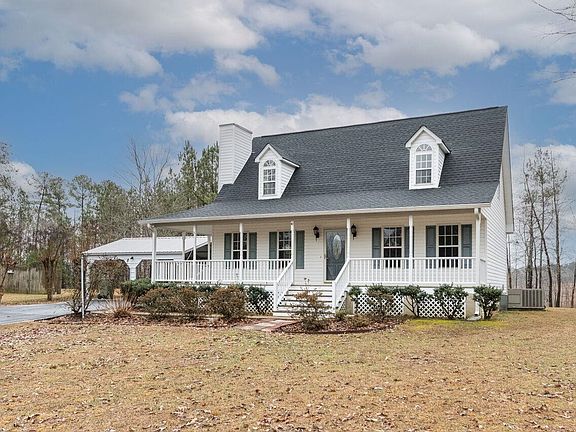 Charming Cape Cod w/rocking chair front porch on 1+acre homesite. New roof (2021), newly refinished hardwood floors, fresh paint & new carpet. Bright & open floorplan. Spacious living room w/gas log fireplace & pass-thru to dining area. Kitchen w/breakfast bar, lots of cabinets, new range & dishwasher. 1st floor owner's suite w/private bath & walk-in closet. 2 large second floor bedrooms. Easy maintaince vinyl exterior. Deep driveway w/parking pad & double carport. Large flat backyard. No HOA or city taxes!!