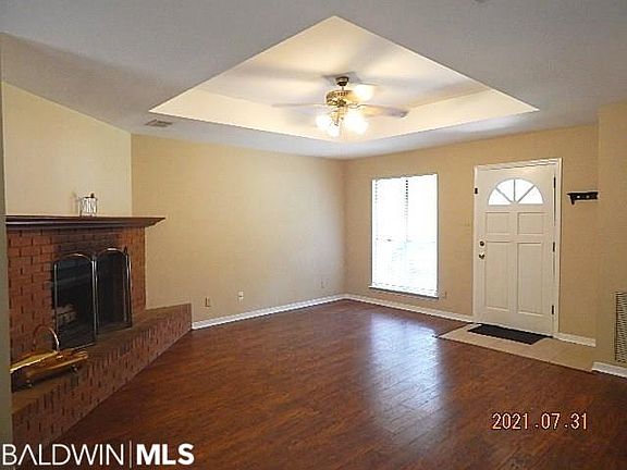 Lovely one-story brick home on a quiet corner of Montclair Loop. Walking distance to the Montclair Loop Pool and Playground. Conveniently located near the Lawson Road entrance. Zoned for Daphne Public Schools. Open floor plan with a wood burning fireplace in the living room. Tray ceilings in the living room and bedrooms. Master bedroom features a full master bath and walk-in closet with plenty of shelf space. Pergo laminate flooring in living room and hallway, with tile in kitchen and bathrooms. Fortified roof installed in 2019, which has saved the current owners more than 30 percent off their annual homeowner's insurance since installation. A/C unit installed in 2014. New countertops in kitchen and bathrooms. Shaded private back yard. Large laundry room. Storage room off rear patio