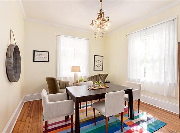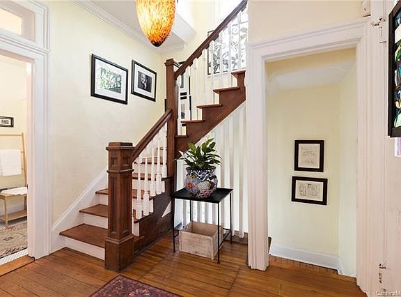 This spacious and bright Montford Victorian features a lower level with two separate entrances that could be a potential homestay, guest suite, or office. Built by architect Richard Sharp Smith on historic Montford Avenue, it is walkable to downtown, steps from Montford area restaurants, and a short drive to Trader Joe's & Whole Foods. Mature landscaping on this large, level yard offers room for pets, play, and plenty of off-street parking. Relax on one of four gracious exterior entertaining spots. An inviting foyer leads to a spacious formal dining room & a sun-filled living room with high ceilings. The main also has a full bath, kitchen, and laundry area. Upper-level features master with en-suite master bath with jet tub & custom tiled shower, plus two additional bedrooms, and a hallway bath. Lower level includes a bedroom, living room, bonus room, kitchen, and full bath. PLEASE NOTE LOWER LEVEL CEILINGS ARE 6'9". 2019 updates: fresh exterior paint and an architectural shingle roof.