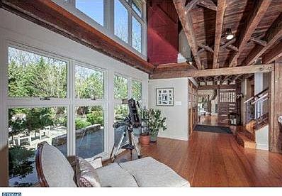Original 1865 Pennsylvania Dutch Bank Barn which the current owners devoted two years to renovating and converting into the amazing home it is today. The open-air style of the homes interior is filled with light a series of lofts balconies walkways and private rooms. Exposed original timber framing and custom iron railings all contribute to the prodigious architecture. Inspired by the magnificence of Stonehenge the great room is dominated by an outstanding 30-foot stone fireplace. Wide plank cypress floors original barn doors stone and original details can be seen throughout the property. Incorporating modern comfort on four levels of living space this house exhibits versatility and ease. The main level boasts energy efficient radiant heated floors; a guest suite proudly displays original wood floors and plenty of space for entertaining. The large master suite includes cathedral ceiling exposed beams and bath complete with steam shower. Positioned on an attractively landscaped lot the property includes a secluded rear yard perfect for relaxing; with grill and dining area terrace outdoor fireplace and hot tub all just minutes from Chestnut Hill Regional Rail local shopping and dining. This is a one-of-a-kind property not to be underestimated or overlooked.