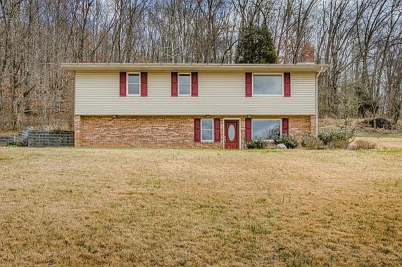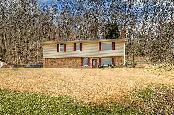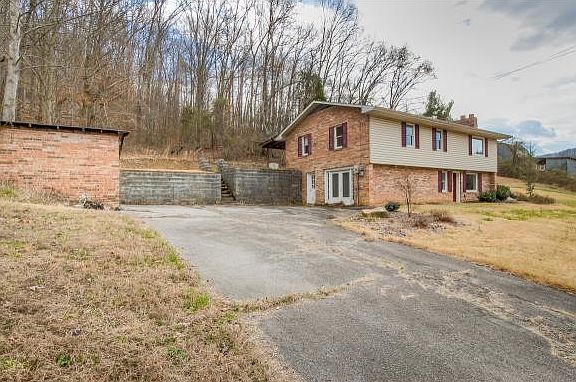 Private - yet close in! Off four lane! 4.61 acres, home has been remodeled, replaced kitchen cabinets, solid surface tops, all interior doors, appliances, tile flooring and back splash, paint, carpet, light fixtures, water heater, heat pump, large master added downstairs w/bath. 4 bed, 2 baths, carpet only in living room, and ready for you to enjoy the full cover back porch!