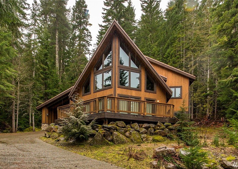 Immaculate turn key cabin! Very private & secluded location, with the sound of the nearby creek. Simply stunning prow exterior with large deck out front. Nicely appointed great room/kitchen/dining, surrounded by floor to ceiling windows for lots of natural light. 1 oversized bdrm & 3/4 bath on main floor, 2 additional bdrms & storage upstairs, + full bath. Upstairs Master is picturesque, with vaulted ceilings & windows to watch the forest & the snow fall! Attached storage room & carport.