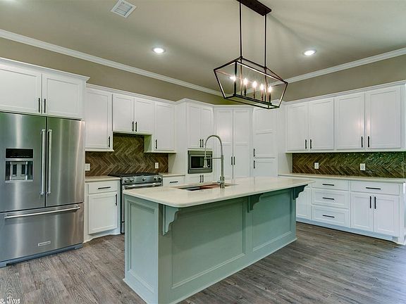 Decorative lighting fixtures, floor to ceiling windows with phenomenal natural light, kitchen with gas range, pantry, all stainless steal appliances, breakfast and breakfast bar dining. Master retreat with walk-in shower and soak tub, walk-in closet, additional spacious rooms and much more speak to the thought and care put into its construction. Backyard offers great relaxation and enjoyment with your outdoor kitchen area and fireplace over looking the pond!