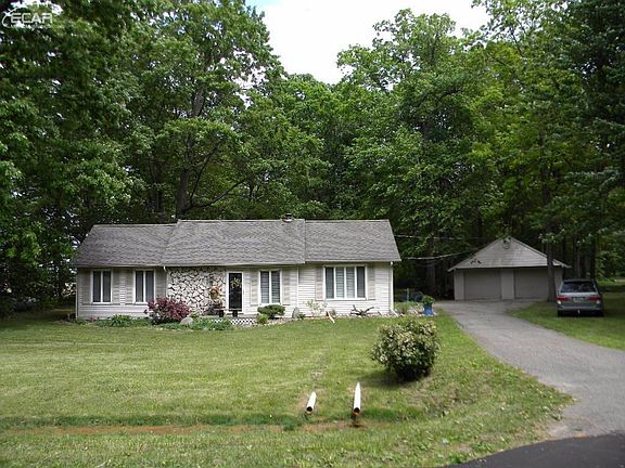 Peaceful Country Setting on a Mature Wooded Lot. Corunna Schools. Home offers custom cabinets with granite counter tops in kitchen. Kitchen is open to the living room with a wood burning stove. Four seasons room has cathedral ceilings, 3 window walls, ceramic floors and a great view of the back yard with abundance of wildlife. Many updates including the furnace, central air. Main level laundry. 2.5 car detached garage with loft above for extra storage, shed. Newly paved road.