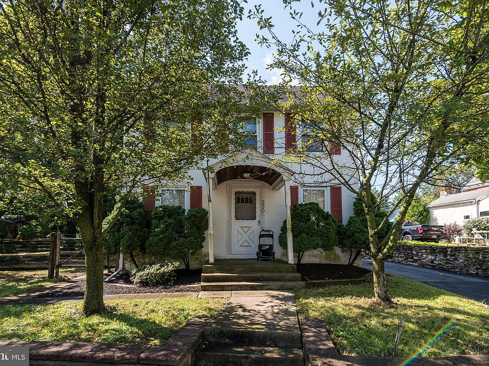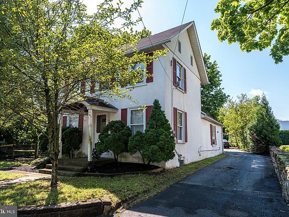 Charm and character meets Boro living - this historic colonial has enormous possibilities! Enter through the front door into the large living room/great room complete with newly refinished original hardwood floors, a built in bookshelf, crown molding, and an abundance of windows to let the sunlight in. The spacious eat-in kitchen is off the living room with rich, updated wood cabinets, a built-in pantry and plenty of room for a table - great for gathering with your friends and family. Just off the kitchen is a flex room that can be used as a third bedroom, family room, formal dining room, playroom, or office. The laundry closet completes the first floor. Upstairs, a small sitting area gives access to the two bedrooms and a full bath. There is also a large, floored walk up attic and full basement for storage. The rest of the property has limitless potential! Escape outside to the private, park-like setting with a fenced side yard and cottage, complete with heat, electricity, cable and phone hookup. This is the perfect home office, gym, or decked out she-shed. The over sized garage has heat, electricity and phone connections, and is a blank canvas that can become whatever you can dream of: a workshop, contractors' garage, storage, office space or ALL of the above! There is tons of attic storage in the garage as well. Great location - close to major highways.