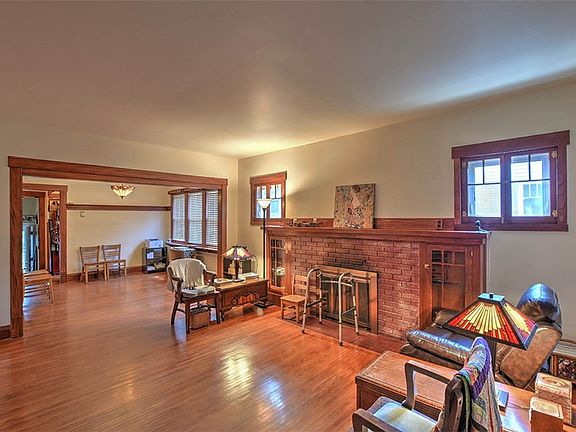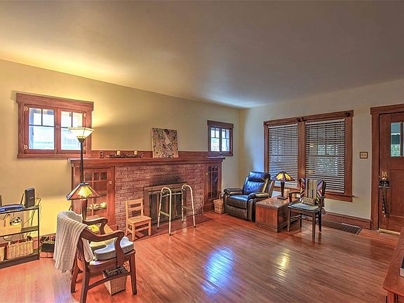 This is a lovely, 3 bedroom Arts & Craft bungalow. All the wood has been refinished and is lovely. Windows have been replaced while still keeping the original wood as much as possible. Gorgeous hardwood floors throughout. 9.5 or 10' ceiling. There is a lovely wood burning fireplace in the living room. Seller hasn't used it for a few years. There are two kitchens. The original one is still intact complete with a stove and refrigerator. There is also a new kitchen open to the breakfast room. The appliances all stay. 2 pantries. The master bedroom is on the first floor and the other two are upstairs. Those two have carpet on the floor, but the hardwood underneath is good. Be sure to look in closets. Some are much bigger than they appear. The basement is unfinished but very usable. No garage, but there used to be one in the NE corner of yard, accessed by alley. Owner suggests the shed be moved to the NE corner and a new garage be put in the SE corner accessed from both street and alley. Another suggestion is to put the laundry and/or a 2nd bathroom in the original kitchen. Roof 3 yrs, storm windows LR & upstrs 1.5, fresh paint LR, DR, hall & downstairs 3 months, dishwasher 3, wtr htr 15, 95% furnace & AC newer, fresh caulk outside. Partially fenced. Electric stove is in new kit, gas in vintage kit. Owner loves this beautiful sunny home that has plenty of space yet still feels cozy. Yard will be cleaned up but help hasn't arrived yet.