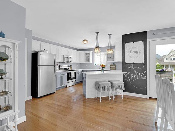 Epitome of Home Sweet Home! Wide front porch great for swing and rocker. No carpet in this house, Light colored gleaming hardwoods throughout. Living room, dining room, and kitchen all open to each other. Shiplap wall in living room and along the peninsula in kitchen. Chandelier in dining room, plus mason jar pendant and custom lights in the kitchen. Quartz countertop, white and gray cabinets, crown, and glass doors, kitchen also boasts pantry. SS appliances and all stay, plus washer and dryer in the main floor laundry. Main bedroom suite has walk in, plantation shutters, and bathroom Double sink custom vanity, 18" gorgeous design tile on floor, separate deep tub, shower, mirrors and lighting all updated. 100+ year old barn antique wood as floor on landing and in hall bath upstairs, stunning. Loft with newer ceiling fan, both beds upstairs have walk ins, LVP floor in 1. Rough-in basement, deck out atrium doors, custom blinds, Newer AC, list goes on. Must see!