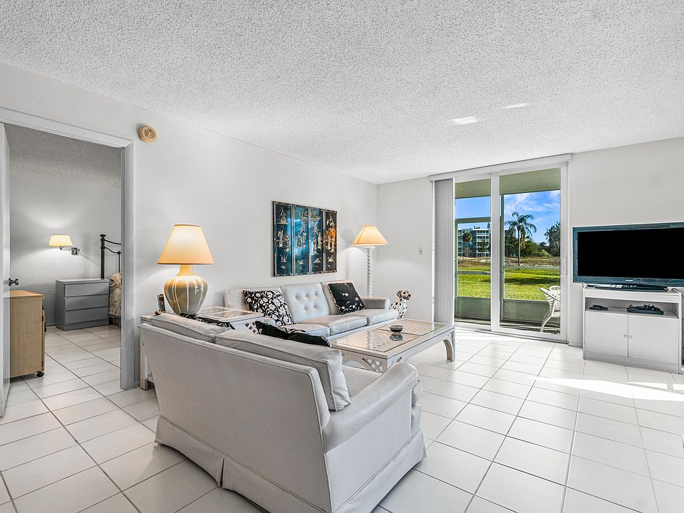 BEAUTIFUL FIRST FLOOR 2 BEDROOM, 2 BATH CONDO WITH OPEN DEN. OFFERS SPACIOUS FLOOR PLAN WITH SPLIT BEDROOMS. ALL SLIDING DOORS AND WINDOWS ARE IMPACT GLASS, EXCEPT SMALL WINDOW IN KITCHEN DOOR. NEWER A/C SYSTEM REFRIGERATOR & WASHER/DRYER STACK, EXPANSIVE VIEW, LOBBY, COMMUNITY POOL AND MORE!!! GREAT LOCATION, CLOSE TO THE BEACH AND SHOPPING, HURRY!!!