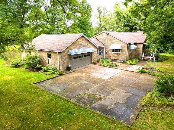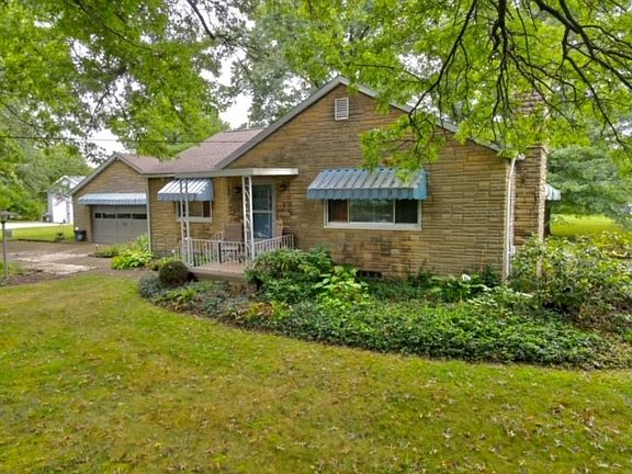 Step into this inviting ranch on 2.1 sprawling-level acres. Countrylike setting yet 2 miles from I-376 & shopping venues/schools/hospital. Picturesque setting completes this stone ranch with new roof 2017, HVAC-2021, H2O-2019, original hardwood floors & two wood burning fireplaces, featuring a new fireplace screen in main level living room! Eat-in kitchen is large enough for breakfast gathering plus a nice size dining room with lots of natural light and the amazing hardwood floors lead into the living room. Two bedrooms on main with updated main bath. Additional living space with lots of options in lower level lends to a game room, 3rd bedroom/den/home gym & large open area in laundry. Full 2nd bath in lower level. Enjoy relaxing in the breezeway attached to the two stall garage with full storage above & add'l back entrance for larger items. Concrete Block 18x20 detached building for lawn equipment on property. Seasonal flowers & apple trees compliment all around the property.