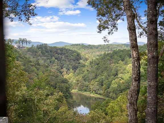 BIG VIEWS - MOUNTAIN, RIVER & LAKE! Nestled at the end of a PRIVATE road on 3+ serene acres, this 3BR/3BA mountain retreat offers a beautiful year round MOUNTAIN VIEW, and magnificent view of where the Coosawattee River flows into the headwaters of Carters Lake. Enjoy magnificent sunsets from your porch while soaking in the peace and quiet of this one-of-a-kind property-plus, the buyer has the option to build another home on the adjacent lot with the same incredible views! (Adjacent lot is included in this sale!) This home features open-concept design showcasing vaulted ceilings, durable LVP flooring, and a cozy wood-burning fireplace in the great room. With three levels of living-each featuring its own bedroom and bath-there's plenty of space for family and guests. The upper-level suite offers a large walk-in closet and private porch; while the finished lower level includes a family room with a second fireplace, built-in shelving, guest room, full bath, and laundry area. Three levels of porches offer fantastic outdoor living with big views & bordering the U.S. Army Corps of Engineers property, you can walk to the lake from your backyard. There's also a fenced yard for your furbabies. Located in a sought-after river resort community with a long list of amenities (3 pools, river parks, hiking trails, rec center, tennis/pickleball, fishing lake and much more), just 15 minutes from town, this move-in-ready home (with some furnishings included) is a rare opportunity to own your own slice of mountain paradise. Recent updates include NEW generator, stainless appliances, roof, HVAC, Pella windows, LVP flooring, built-in bookcases, porch railings, retaining wall and freshly painted decks. NOTE: Buyer may choose to keep the adjacent 2.4 lot to protect their privacy, to build another home, build a detached garage/workshop, or the option of selling the extra lot in the future. (STR's Allowed)