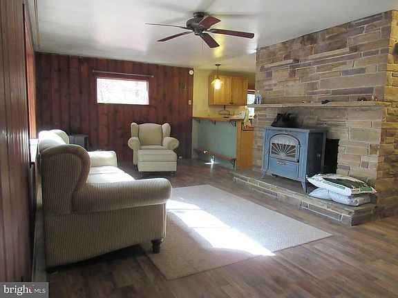 - Ceiling Fan(s), Window Treatments, Eat-in Kitchen, Open Floorplan, Wood Stove, Entry Level Bedroom, Breakfast Area, Family Room Off Kitchen, Tub Shower