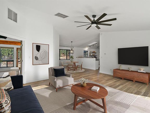 Now offered at $799,000 and eligible for short-term rental use, this charming retreat on 3.85 acres combines comfort, flexibility, and stunning La Plata Mountain views. The 2,162 square foot, single-level home features 3 bedrooms, 2.5 bathrooms, and an attached 2-car garage. Nestled among tall pines in the peaceful Rafter J area with no HOA, the remodeled home blends modern living with rustic charm, plus includes an impressive 1,800 square-foot detached workshop/garage for your creative or professional needs. Large windows throughout the home illuminate every room with natural light, creating a warm, welcoming atmosphere. Recent updates include the installation of two AC mini splits for modern climate control, a fenced backyard with zero landscaping, new light fixtures, and exterior accent paint. The house features an open layout with a centrally located kitchen that boasts stainless steel appliances, extensive counter space, and a wood-burning stove, enhancing the overall ambiance of your entertaining space. The spacious living area is ideally designed for relaxation and entertainment, featuring ample wall space for a large-screen TV and generous room for multiple seating arrangements. It opens directly onto a backyard patio. Step inside the spacious primary suite, a true haven of tranquility with ample natural light and an extra reading nook, or a quiet spot for yoga or morning coffee by the large windows. The primary bath has a garden tub, a separate shower, and dual vanities, all under the glow of natural light. The home also includes Jack and Jill style bedrooms for added privacy, with a full bathroom between them. Outdoor living is just as splendid with a spacious, fenced backyard, ideal for socializing or a secure play area for pets. The backyard features a propane hookup for your grilling needs and zero-scaping for easy maintenance. A notable highlight is the impressive 1800 sq ft detached workshop/garage, which is equipped with a 220 inverter, a separate electric meter, an engine lift arm, and a custom-built wood & coal-burning stove. The workshop is equipped with airline connections throughout, providing easy access for air tools. The workshop includes a half bath, making it the perfect space for carpentry or woodworking, storing additional vehicles, snowmobiles, or ATVs, restoring cars, or potentially converting it into a "man cave." This versatile space offers vast potential for various hobbies or storage needs, enhanced by high ceilings and large doors that accommodate extra vehicles or equipment. Experience privacy, peace, and convenience at this unique property, just 10 minutes from Downtown Durango.