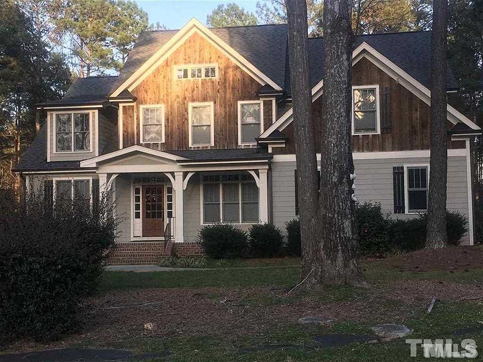 Stunning custom home just over the Franklin county line, nestled on 1 acre wooded lot.Cedar & hardiplank siding. Gorgeous stone fireplace in huge chefs kitchen with granite,cherry cabinet & huge pantry. Two story family room has regal stone fireplace & wrought iron staircase. Two big bedrooms and bonus room upstairs. Expansive garage. Pool and Clubhouse in community. Just a short drive to Wake Forest and Raleigh.