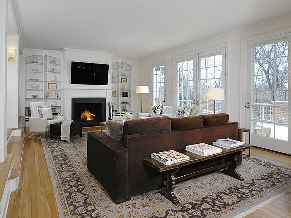 Handsome custom home designed by acclaimed architectural firm Austin Patterson Disston. This sunlit Colonial is set on a private landscaped acre very close to town and schools. The versatile floor plan allows for a first or second floor master suite, both with sitting room or office. The beautiful living room with fireplace and French doors opens onto an expansive terrace that runs the length of the house. Formal dining room with corner cabinetry and cozy library with fireplace and wet bar for entertaining. Gourmet dine-in kitchen with family room, fireplace and French doors to the terrace. 3 double bedrooms on second floor in addition to master suite. Lower level with large family room and single bedroom and full bathroom is walk out to the lush backyard. Backstairs, 2 powder rooms, generator and attached 2 car garage. Stunning home in fabulous location!