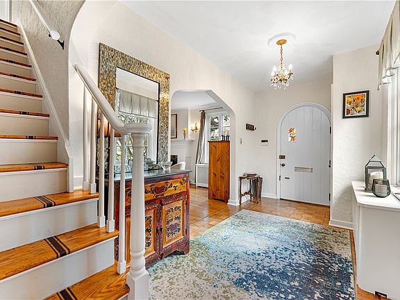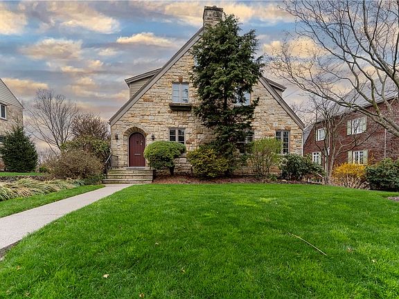 Beautiful stone Tudor home in heart of Mt Lebanon. So many updates throughout. New walkway leads to front door into a welcoming entrance. First floor has finished hardwood floors,crown molding & recessed lighting. Beautiful mantel with gas fireplace in spacious living room. Perfect for entertaining Spacious dining room leads to family room & kitchen. First floor half bath. Updated high end kitchen w cherry cabinets, granite countertops and stainless steel appliances. Kitchen has bump out addition for eating area with radiant heated floors. Back kitchen door leads to trex deck/steps to level private yard. Family room for relaxation has large picture window overlooking new flag stone patio perfect for grilling. Landscaping amazing! Upstairs has four large bedrooms with master suite, fourth bedroom on 3rd floor. Lower level has two separate integral garages. Basement has laundry and high ceilings in this large room w great storage. So much more!