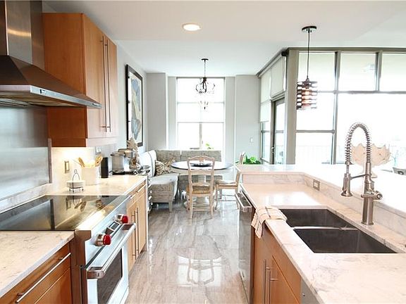 Beautifully renovated condo with amazing views of Centennial Olympic Park and the Atlanta Skyline! Open floorplan has floor to ceiling windows that give the condo lots of natural light. Renovated Kitchen with all new, gorgeous Carrara marble waterfall countertops, Wolf and Viking appliances. Bamboo hardwood floors in the main living area. Spacious living room has custom Terrazzo stone wall with built-in electric fireplace, large tv and sound bar. Covered balcony perfect for dining al-fresco with a view! Large Master suite has custom built-in closets, renovated bathroom, marble countertops, porcelain tile floors, claw bathtub, and large walk-in tiled shower. Secondary bedroom, perfect for guest room, office or workout room, has all new flooring and a remodeled bathroom. HVAC and Water Heater are less than 4 years old. Unit includes two deeded parking spaces and a storage unit. Amenities included: 24/7 onsite concierge, rooftop terrace, BBQ area, pool, fitness center. Steps away from Centennial Olympic Park, State Farm Arena, Mercedes Benz, GA Aquarium, yummy restaurants and so much more. Welcome home!!