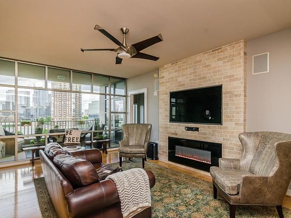 Incredible views overlooking Centennial Olympic Park and the Atlanta skyline!! Hardwood floors, stainless steel appliances, walk-in custom closets. Only unit that has a brick wall with built-in faux fireplace(TV is included). Don't forget the amenities - top notch concierge, rooftop terrace, pool and fitness room. 2 Assigned covered parking spaces and a storage unit.
