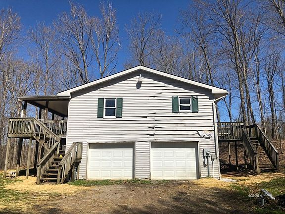 This 3 bedroom, 2 full bath house is located on a beautiful wooded 7 acre+ hilltop lot. The land is a mixture of rock outcroppings, woods, flat areas and cleared fields. Each time I visit the property I see more and more why it's the perfect location- privacy, nature, spectacular views and so much potential. The house is spacious with a lot of natural light, 3 good sized bedrooms, decks in the front and back and a full walkout basement that could easily be partially finished. Conventional, rehab loan or cash purchase only. Property is being sold "as is", Seller will not make any repairs. Great for a house flipper or handy person who wants to put in some hours and make this a gem! Alexander School District, Buckeye Rural Electric & LeAx water.
