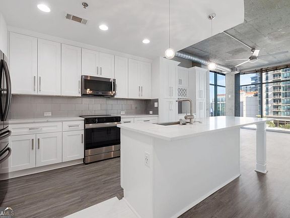 Welcome to Eclipse, a sleek, modern condo in the heart of Buckhead Village! This elegantly remodeled high-rise unit features floor-to-ceiling windows, flooding the space with natural light and offering stunning North Buckhead views from a private balcony. The open-concept layout includes a gourmet kitchen with stone countertops, expanded cabinetry and sleek black appliances. Enjoy the cozy fireplace in the living room, a spacious bedroom with a custom walk-in closet, and an elegantly designed bathroom includes a frameless shower and an oversized vanity providing ample storage. In-unit laundry and assigned parking on same level as home is an added bonus! Eclipse boasts premier amenities such as 24HR Concierge, a rooftop pool with city views, a state-of-the-art fitness center, and a resident lounge. Located steps from The Shops at Buckhead, this home offers easy access to upscale dining, retail, and major highways. Popular dog park FETCH PARK is also just across the street! Building is FHA approved and pet friendly.
