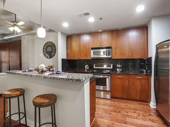 You will love this charming condo in the heart of Buckhead. This sleek 1 Bedroom condo features 10' high ceilings, exposed concrete, modern open floor plan and balcony w/private views. The kitchen attains an island with a breakfast bar, stainless steel appliances, tile backsplash, and stone countertops. Eclipse offers a beautiful, newly remodeled lobby, 24-hour concierge, a relaxing club room, state of the art fitness center, and a rooftop resort-style pool. All while being conveniently located next to The Shops of Buckhead with a walk score of 93!