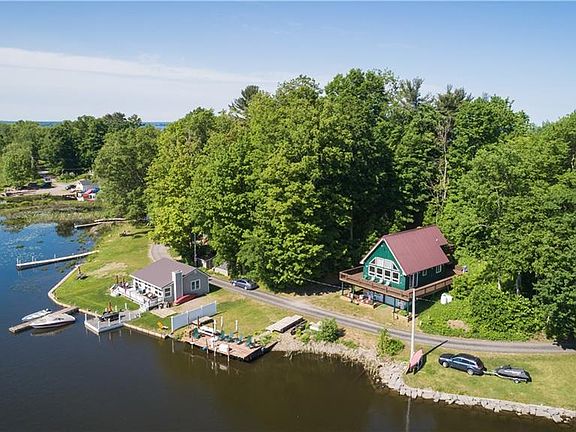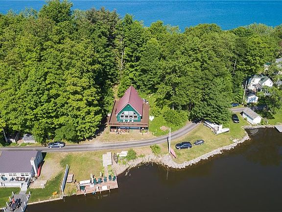 Amazing year round home w/dual waterfrontage on The Salmon River and Lake Ontario. Fantastic deep water dock w/full fish cleaning station on the river that allows for easy access onto the Lake. Sandy beach lakefront with breathtaking, inspiring views as far as you can see in both directions. This beautiful A-frame offers 4bd 3ba including an entire floor dedicated to the master suite. Upgraded kitchen w/custom cherry cabinets. Open layout dining/living area w/a full wall of windows offering panoramic views. Finished lower level w/an additional kitchen & living area. Huge wrap around deck. Bunk house on the Lake is such a fun feature to 'camp-out" directly on the lake! Looking for a vacation home? Are you a fisherman looking for wordclass fishing? THIS IS IT!