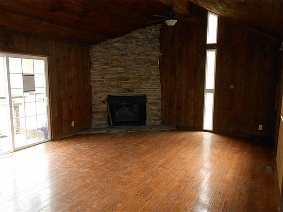 Oversized two story home with very generous room sizes, kitchen with abundance of cabinets, stunning game room with grand stone fireplace, hardwood floors and vaulted ceiling, living room with brick hearth for woodstove, updated windows and doors, master bedroom with loft, attached dog kennel or shop. Updates needed.