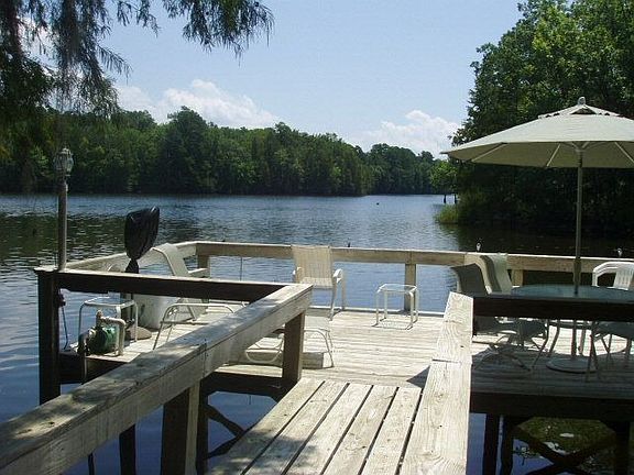 A beautiful custom built waterfront home in pristine condition on a fully deeded lot on a scenic cove. This ready-to-move into home features a living room w/double-trey 11' ceiling, crown molding, Pella doors to tiled screened porch overlooking Lake Marion, wood burning fireplace w/mahogany custom mantel & cherry floors. Kitchen has custom cherry cabinets, cherry floors, bay window over- (con't)