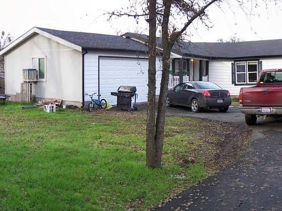 On large corner lot of Rainbow Road and Grant Avenue, half an acre, manufactured home w/433, 1800 sq. ft., is in need of attention. Has a double attached garage for ease. 3 bedrooms, 2 baths, large living room, family room, pantry, dual pane windows, and vaulted ceilings.