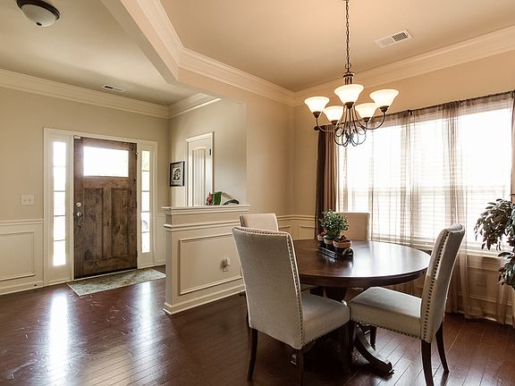 This fantastic former-model home with many upgrades has four great bedrooms and two and a half bathrooms. The appeal starts from the curb with an attached two car garage, covered front porch, and quaint landscaping. The immaculate entryway has dark hardwood flooring and an open floorplan that leads right into the living space with fireplace and ceiling fan. Kitchen has upgraded appliances, kitchen island with breakfast bar, and tons of countertops. All bedrooms on the second level with vaulted ceilings and ceiling fans. Backyard backs up to wooded area with a concrete patio.