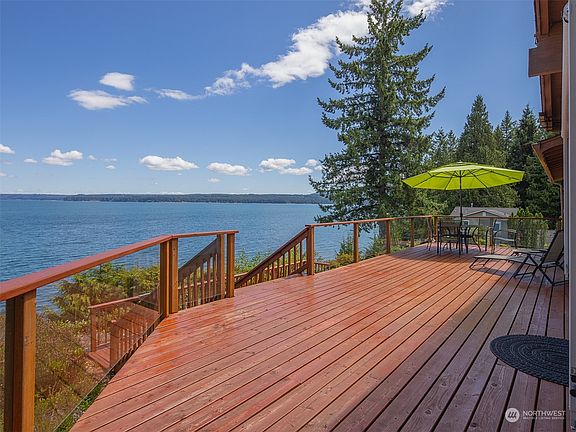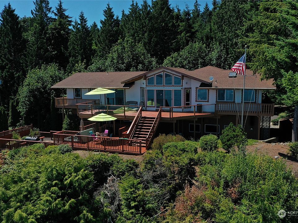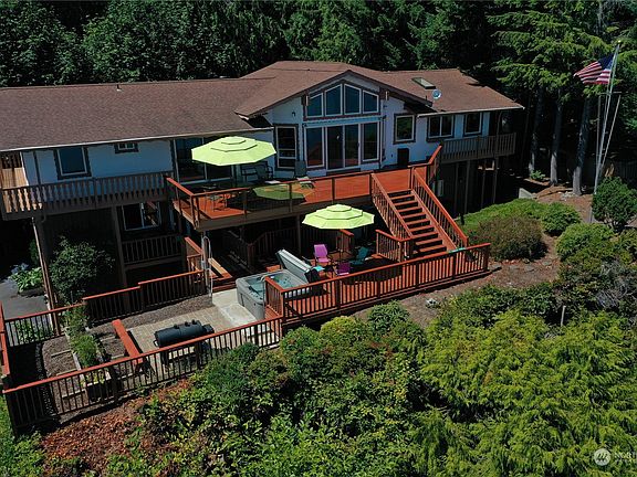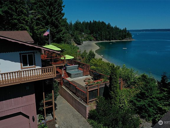 "Kettle Cove" is a multi-level home designed to maximize the unobstructed views of Dabob Bay, Hood Canal & Mt. Rainier. Prowl windows flood the home w/natural light and maximizes the water views. Upper level features a spacious living room, dining area, kitchen w/pantry, 2 additional bedrooms & adjoining full bath. Master bedroom with water view & access to deck, 5 piece master bath, vanity & his/her walk in closet. Lower level is perfect for ADU. Relax & barbeque on the interconnecting decks with hot tub & fire pit. Room for your boat, kayak or paddle board in the lower 2+ car garage. Easy access from home to shared boat launch to your own 100ft of beachfront & tidelands for your enjoyment. Income producing VRO w/dual laundry facilities.